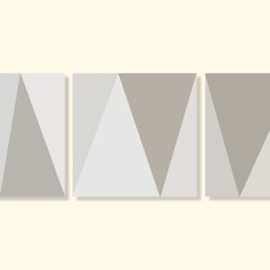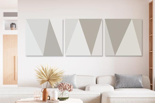 Tablouri Canvas Abstracte Set 3 Piese – Triunghiuri Alb Gri TA98356